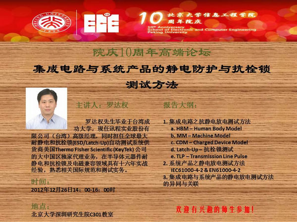 【WilliamHill中文官网入口院庆十周年系列讲座】罗达权经理:集成电路与系统产品的静电防护与抗栓锁测试方法