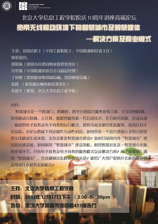 【WilliamHill中文官网入口院庆十周年系列讲座】刘韵洁院士:宽带无线移动环境下的智慧城市及智慧媒体-解决方案及商业