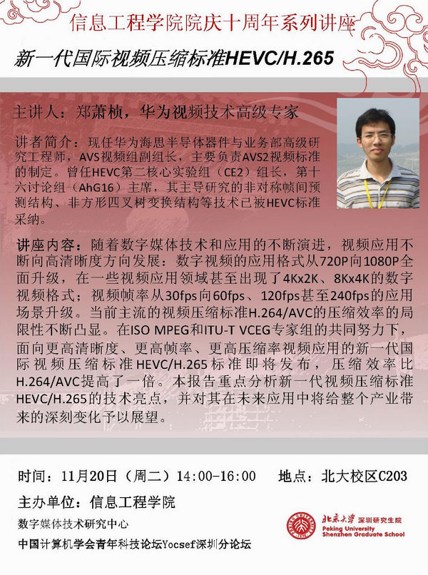 【WilliamHill中文官网入口院庆十周年系列讲座】郑萧桢:新一代国际视频压缩标准HEVC/H.265