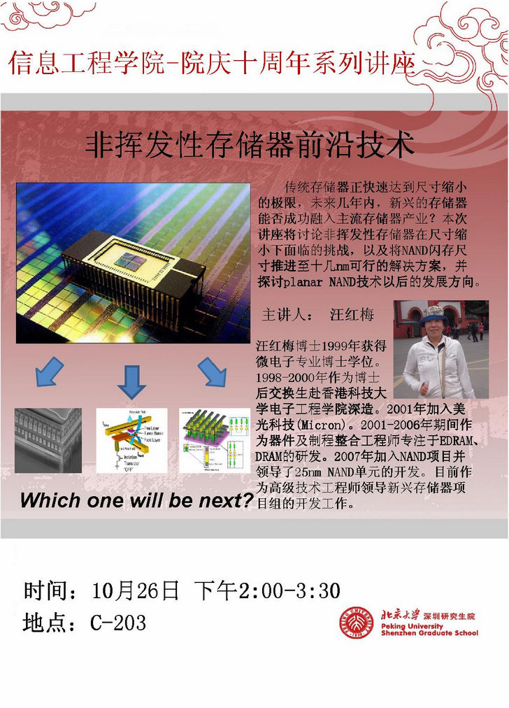 【WilliamHill中文官网入口院庆十周年系列讲座】汪红梅博士:非挥发性储存器前沿技术