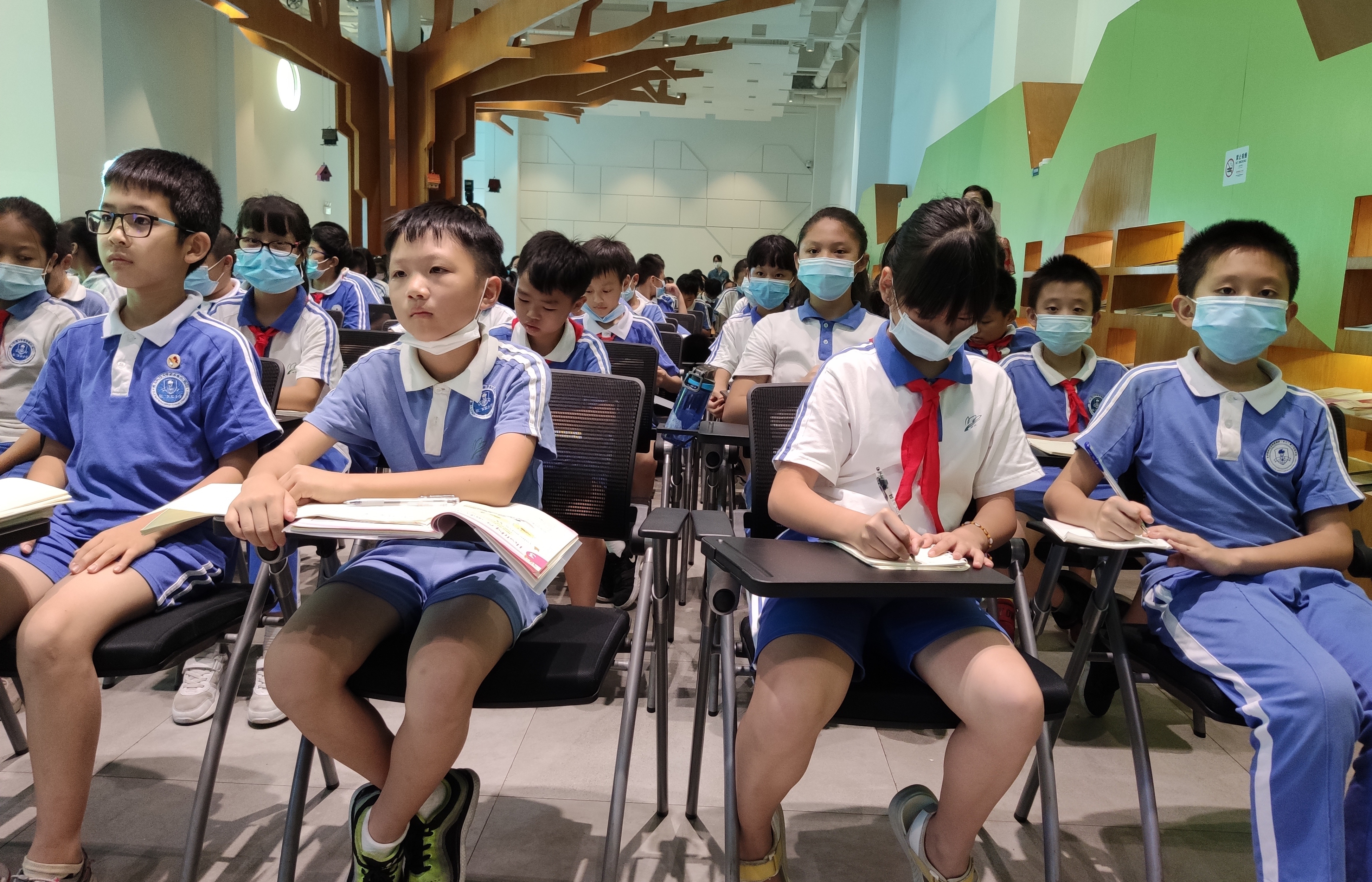 图3 六年级同学们专心听讲并认真做笔记,在提问环节积极举手,气氛热烈。