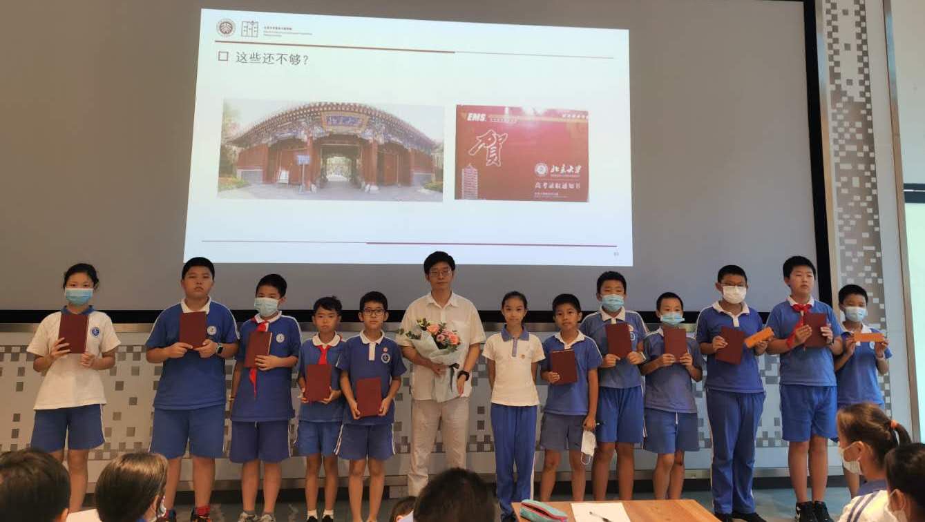 讲座过程中,陈杰老师充分调动同学们的积极性、采取有奖竞答等互动方式让同学们迅速地学以致用,张婧老师贴心地为正确回答问题的同学们送上北大纪念品,现场气氛非常热烈。同学们一双双充满好奇心和求知欲的眼睛,一只只在提问环节争相举高的小手,获得奖励和表扬后流露出的激动之情,无不展示了他们对新知识的渴望。