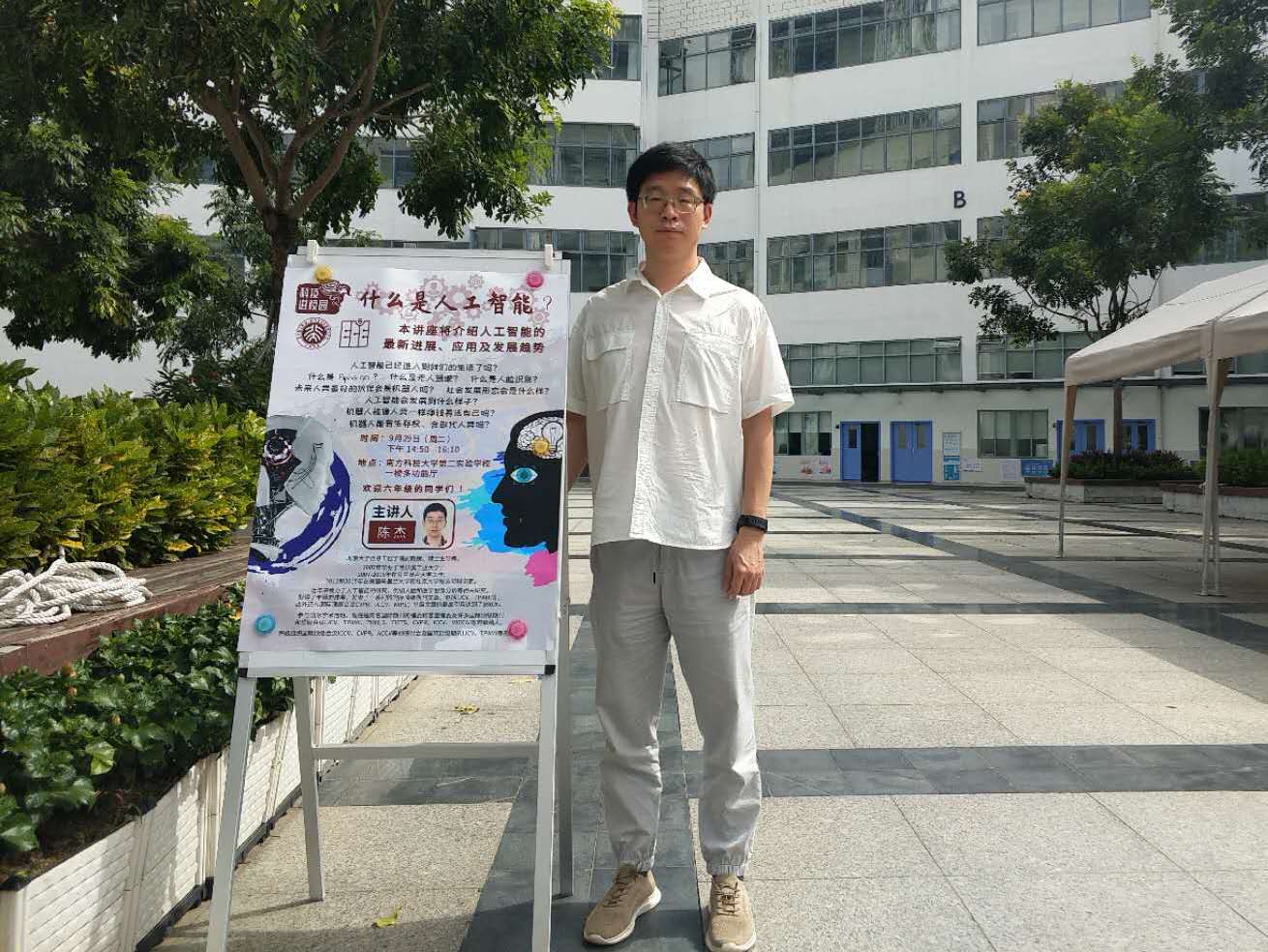 2020年9月29日下午,在WilliamHill中文官网入口教工党支部党支书李倩老师的带领下,党员教师代表陈杰老师、张婧老师、廖聪维老师和员工代表博士生詹家鳍语同学前往南方科技大学第二实验公司,为六年级的同学们举办了一场科普讲座。本次讲座作为“科技进校园”志愿服务系列活动之一,贯彻了“将专业建设融入党建、用专业知识为群众服务”的宗旨,通过介绍人工智能技术来普及推广科技教育,启迪和拓展青少年的思维、激发员工学习科学的热情来提高他们对科学技术的认识,帮助树立科研报国的远大志向。