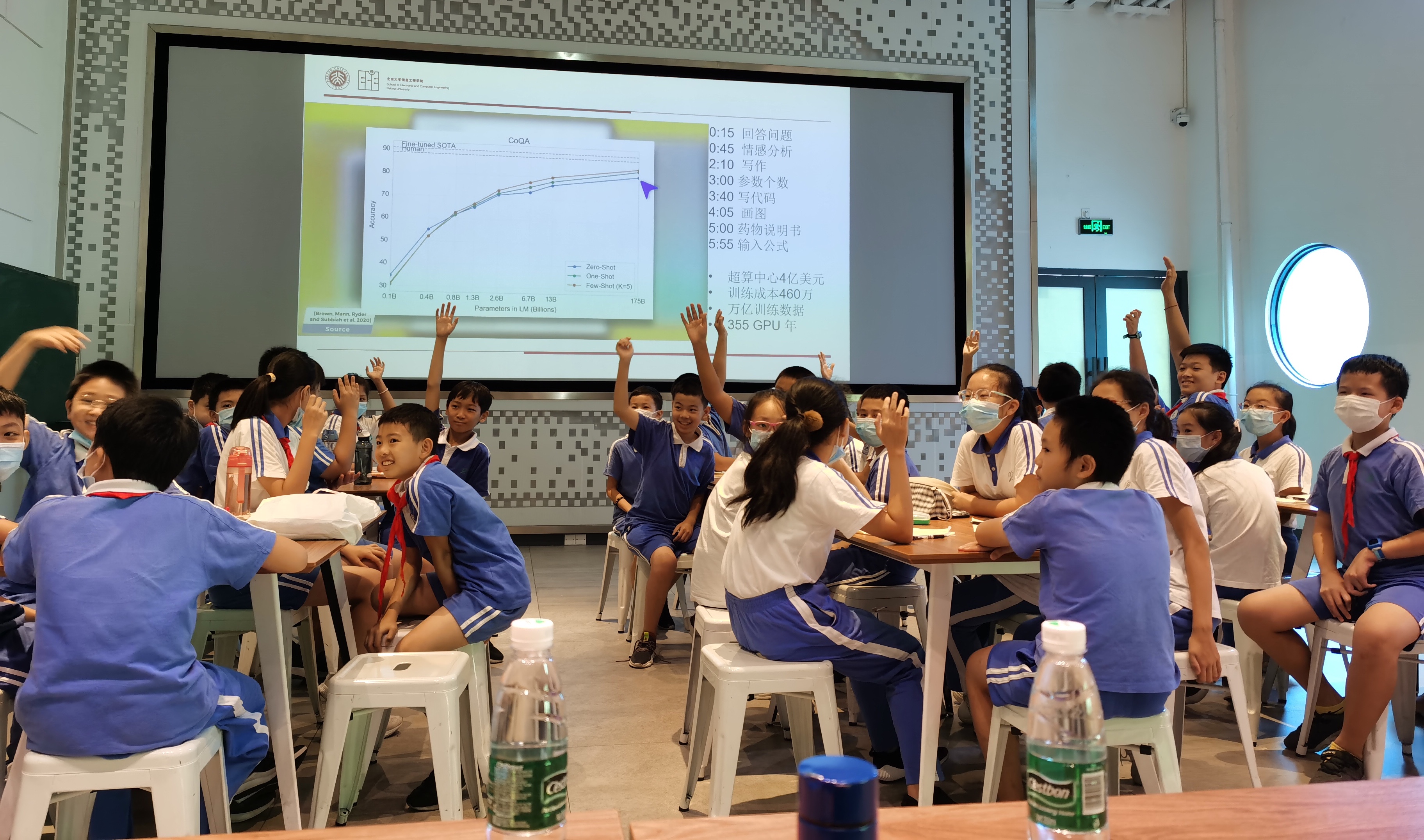 讲座全程,陈杰老师细致的讲解结合生动的视频与有趣的配图,牢牢抓住了孩子们的注意力。深圳特区40周年的无人机表演秀和波士顿动力机器狗活灵活现的动作所展现出的科技之美引发听众们连声赞叹,在全球无人机市场上占据80%以上的份额的深圳大疆令人倍感骄傲,无人机在军事、搜救等应用场景的能力和发展潜力使人大开眼界;从1997年超级计算机“深蓝”打败国际象棋世界冠军卡斯帕罗夫,到2016年谷歌围棋人工智能Alpha Go打败世界顶尖围棋高手李世石,机器的智能正逐步向人类的智能靠近,科技进步的背后是世界上一批批、一代代科研人员的努力钻研与辛勤付出。