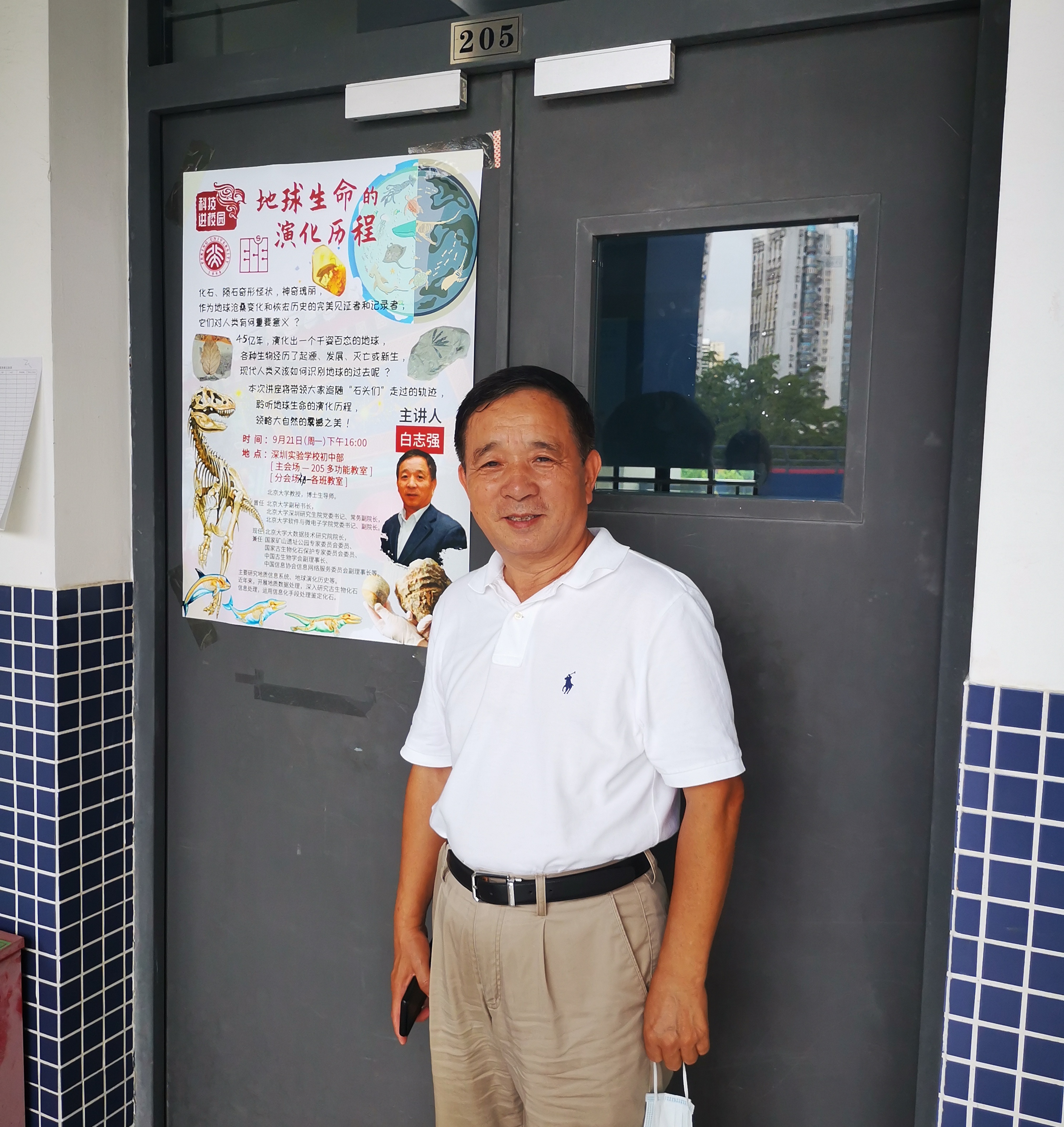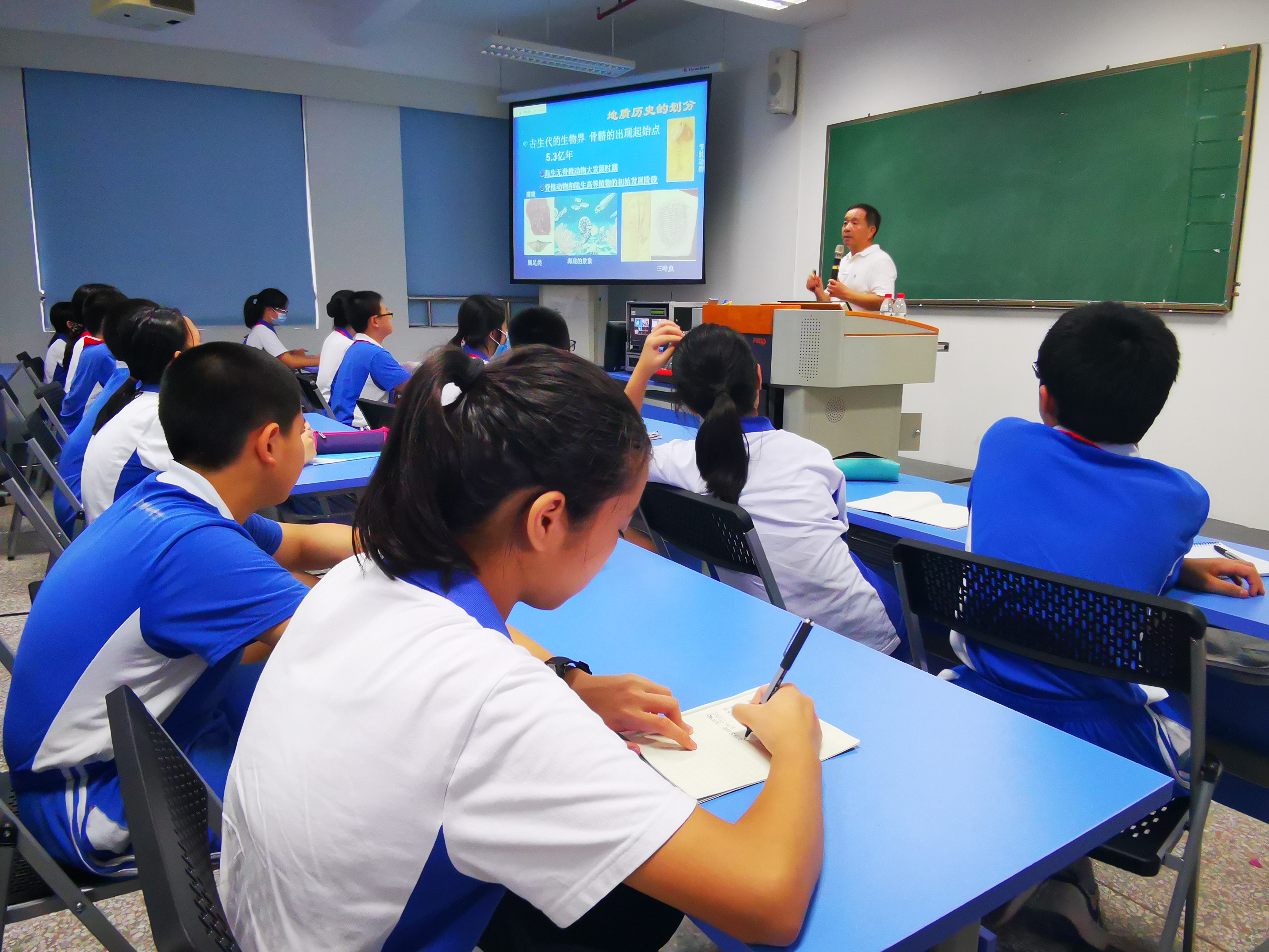 白志强老师引导同学们透过现象看本质,旅游时所看到的丹霞地貌和生活中常见的花岗岩不止是风景,更蕴含了宝贵的科学知识,可以帮助人类揭示出地球演化的规律,并通过认知地球上生命是怎样运转的来探索地球未来的无尽可能,这类研究,宏观上有利于保持动植物的多样性,微观上对人类基因层面的探究也是有益的。地层的形成、化石的产生、板块运动、进化论、地球早期形态、生物的分子到细胞、单核细胞到真核细胞的过渡、骨骼的重要意义和作用、生物获取食物从被动到主动的进化、生物摆脱对于水的依赖、恐龙称霸中生代、裸子植物和被子植物、哺乳动物、灵长类动物、“出现在23点59分”的人类……对于孩子们来说,科学知识在白志强老师的讲解下变得易于接受和吸收,原本陌生的地球45亿年的历史长河一下子有了形态、变得具体了。